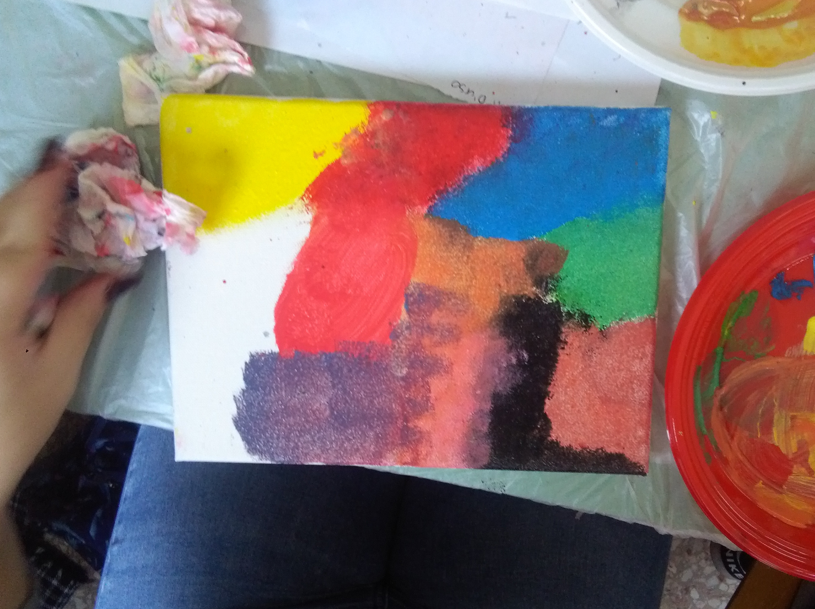 L'immagine in alto a destra rappresenta i lavori presenti nella mostra mentre le immagini in basso rappresentano una fase di lavorazione delle opere realizzate.Cliccando qui è possibile visitare il blog della scuola.